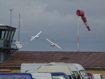 Wer fliegt zuerst durchs Hangar-Fenster? |